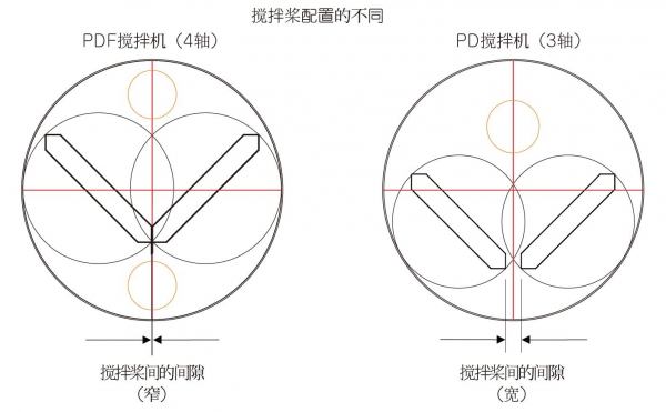 是一种捏合、混合、搅拌机,它改进了PD搅拌机(3 轴)低速桨直径的尺寸和布置,两个扭曲框型搅拌桨的行星运动形成更强的捏合和搅拌效果与和两个高速搅拌的高剪切力结合在一起。