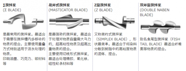 捏合机的效率取决于搅拌桨的排列形式及其形状(种类)。