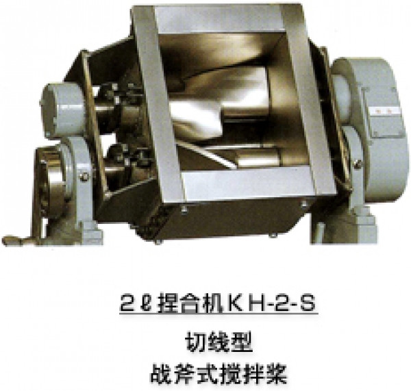 捏合机是对于高粘度物质及超高粘度物质的混练、捏合发挥超强性能的机器。通过两根坚硬的搅拌桨及搅拌桨之间和搅拌桨与捏合槽之间所产生的强力剪切力,达到最高的捏合(混练、粉碎、分散)效果。并且可以进行冷却、加热、真空减压(选配)。通过加热、真空减压来实现汲水方式的捏合。