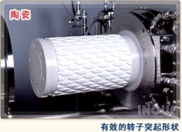 分散筒内壁和转子外周之间的间隙狭窄,且通过转子表面特殊的凸起物的作用实现与分散盘型、柱型砂磨机不同的接近于栓流的流动。