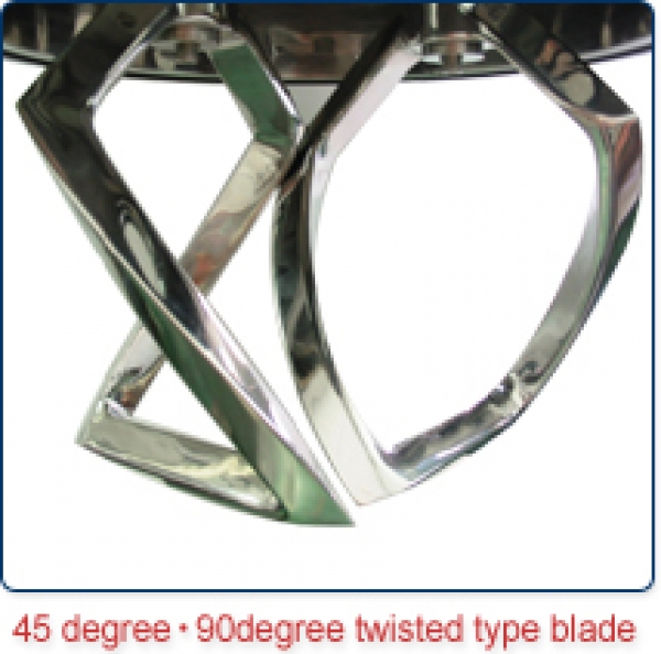 The pair of open frame type blades (Patent No.933434) are precisely machined to maximize mixing and kneading efficiency in the tank.