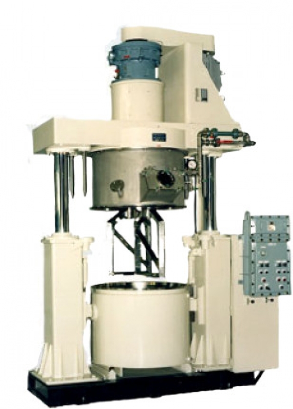 플라네타리 믹서는 고체(분립체)와 액체의 교반, 혼련에 뛰어난 성능을 발휘하는 만능믹서입니다. 2개의 블레이드로 구성되어 있으며 유성운동(Planetary 운동)이 블레이드 사이 및 블레이드와 탱크 내면의 정밀한 클리어런스에서 이루어지므로 Dead Space가 매우 적으며 강력한 전단력이 작용하여 고도의 니딩효과(교반, 혼련, 분산)를 얻을 수 있습니다.