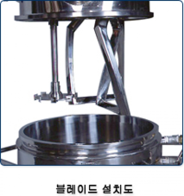 블레이드 축은 상부 고정식(수직형)이기 때문에 수평형의 니더와 같은 사이드 고정식에 비하여 축부의 청소가 매우 용이하며 탱크 또한 교환식이므로 청소 시의 안전성도 대단히 높습니다.