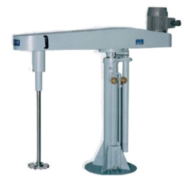 ディゾルバーは、低粘度より中粘度の流動性のある液体や固体(粉粒体)と液体との混合物によってなる粘性体(ペースト)の混合、攪拌、分散、溶解に欠かすことのできない高速ミキサー(DISSOLVER&DISPERSER)で、タービン型ブレードを高速回転させ、ブレード円周上のタービン状チップによって衝撃と剪断作用をおこさせます。特に凝集紛粒体の破壊作用に効果的です。型式としてDHC型(定速型)とDHV型(変速型)があります。攪拌部の昇降は油圧リフト式です。(一部に手動昇降式もあります。)