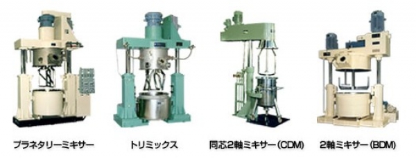 ラムプレス(押出・排出機)使用の前工程として、高粘度物質の攪拌・混練・分散に、プラネタリーミキサー、トリミックス、同芯2軸ミキサー(CDM)、2軸ミキサー(BDM)等があります。