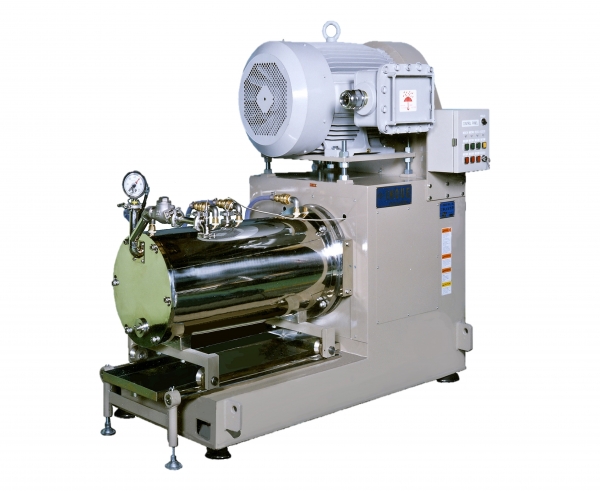 マイティーミルマークⅡのビーズ分離機構を改良し、ギャップセパレーターとスクリーンセパレーターを一体化させ大流量処理可能な完全密閉・水平型のビーズミル。